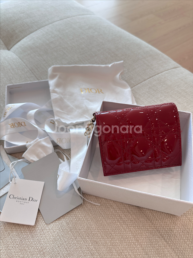 체리레드 페이던트 레이디 디올 지갑입니다 실 사용 1번이라 하자 없어요 사진 보시면 아시겠지만 가죽 늘어짐 하나 없습니다 같은 모델 지갑 작은 사이즈로 사용중이라 울면서 싸게 팔아요 😭 - 박스, 더스트백, 보증서 포함 개인정보 지우고 사본 드려요 ! As는 개인정보 필요없습니당