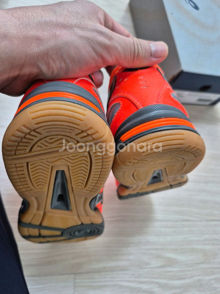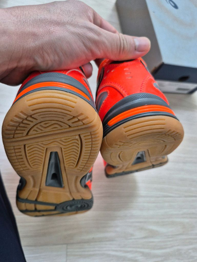 아식스 로테 라이브 FL 5 오렌지입니다. 말이 필요없는 인도어화 역대급 제품이죠. 단종되어서 더 주목받기 시작했죠?? 제가 과거에 신었을때 정말 가성비 좋아서 당시 여자친구였던 와이프에게 선물해줬었어요. 두세번 실내배드민턴장에서 한시간정도 신어본게 다구요. 색상이 너무 화려하다고 안신는다고 해서 무난한 색상으로 다른거 사준이후로 보관만하던 신발입니다. 저도 단종후에 더이상 못구하고 지금은 러셀가가 말도 안되는 수준이라...다른 신발 애용중이네요. 검색해보니 체대입시생분들에게 인기가 좋네요. 이사하며 신발정리중이라 내놓습니다!!