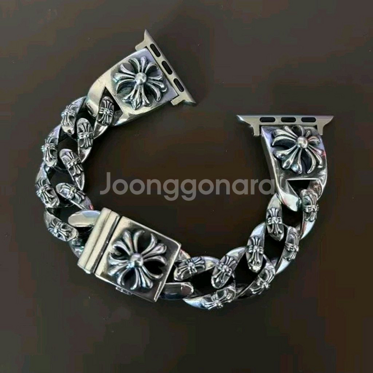 시계에 대담한 고딕 감성을 더해주는 실버 크로스 플라워 시계 체인입니다. 섬세한 크로스 플라워 각인과 견고하게 연결된 스트랩 구조로 스타일리시하면서도 강렬한 분위기를 연출합니다. 과하지 않으면서 손목에 포인트를 줍니다. 매끄러운 금속 광택으로 깔끔한 Shine을 제공하며, 편안한 착용감으로 하루 종일 착용해도 부담이 없습니다. 캐주얼 스타일이나 얼터너티브 패션과 매치해도 개성 있는 손목 연출이 가능합니다. 스테인리스 스틸 소재로 제작되어 일상적인 사용에도 내구성이 뛰어나며, 특별한 상징성을 가진 액세서리를 선호하는 분들에게 적합합니다. 상품 정보 상품 유형: 시계 체인 / 시계 스트랩 디자인: 크로스 플라워 패턴 소재: 스테인리스 스틸 색상: 실버 마감: 광택 금속 호환: 모든 애플 워치 사용 가능 스타일: 고딕 / 얼터너티브 / 유니섹스 착용감: 가볍고 편안한 일상 착용 가능 용도: 캐주얼, 데일리, 스트리트 스타일, 얼터너티브 패션