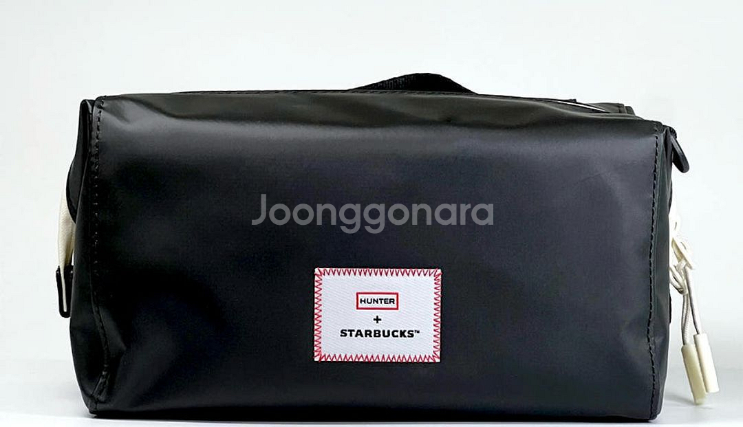 스타벅스와 헌터 콜라보 파우치백이에요! 블랙 컬러에 화이트 지퍼로 깔끔하고 실용적인 사이즈입니다.