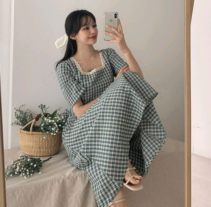 리리앤코 폴네튜 롱원피스입니다. 1사이즈이며 몸에 달라붙지 않는 소재라 여름에 시원하게 입기 좋아요! (마지막 사진 사이즈표 참고해주세요) 스퀘어넥이라 목 짧은 분들 강추해요. 뒷리본으로 허리 강조도 가능합니다. 2-3번 정도만 입어서 하자 없어용 gs25 반값택배 + 2000원 일반택배 + 4000원 에이블리 체크원피스 반팔원피스