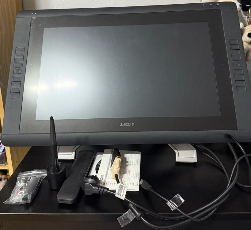와콤 신티크 DTK-2200K 드로잉 타블렛입니다. 기기에는 문제가 없는데 컴퓨터를 고사양으로 바꿔서 그래픽카드 연결 건으로 그냥 바꾸려고 합니다. 따라서 그래픽카드 DVI 호환이 되는 본체를 사용하시는 분이 가져가시는게 좋을 듯 합니다. 전용 거치대와 케이블 등 구성품이 모두 포함되어 있고, 상태도 먼지 안쌓이게 최대한 관리를 잘해놔서 깔끔해 보입니다. 연결 케이블이 조금 더 있었던것 같은데, 현재 있는 구성품으로 몇년간 문제없이 사용해왔습니다. 드라이브CD 있고 제가 따로 구매한 펜 케이스 및 펜촉, 골무 등도 있습니다. 화면에 스크래치는 거의 없고 왼쪽의 상단, 중앙 필름에 아주 조금 공기방울이 들어가있습니다. 사진 깜빡했는데 궁금하시면 찍어드려요. 위치는 구매 원하시면 설정한 지역보다 최대한 더 멀리 갈수있으니 연락 부탁드려요! 남양주 진접 별내 노원 양주 등 가능합니다! 말씀주세요