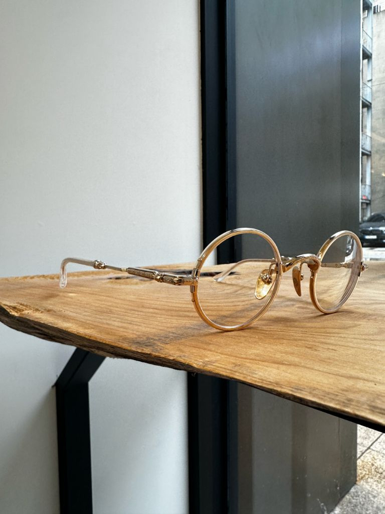 크롬하츠 24년도 첫구매 후 몇번 쓰니 질려서 올립니다. 골드 에 투명 윈저림 제품입니다. 42ㅁ25 140 울피 보다 작아요 폭은 비슷합니다. 작은안경입니다.