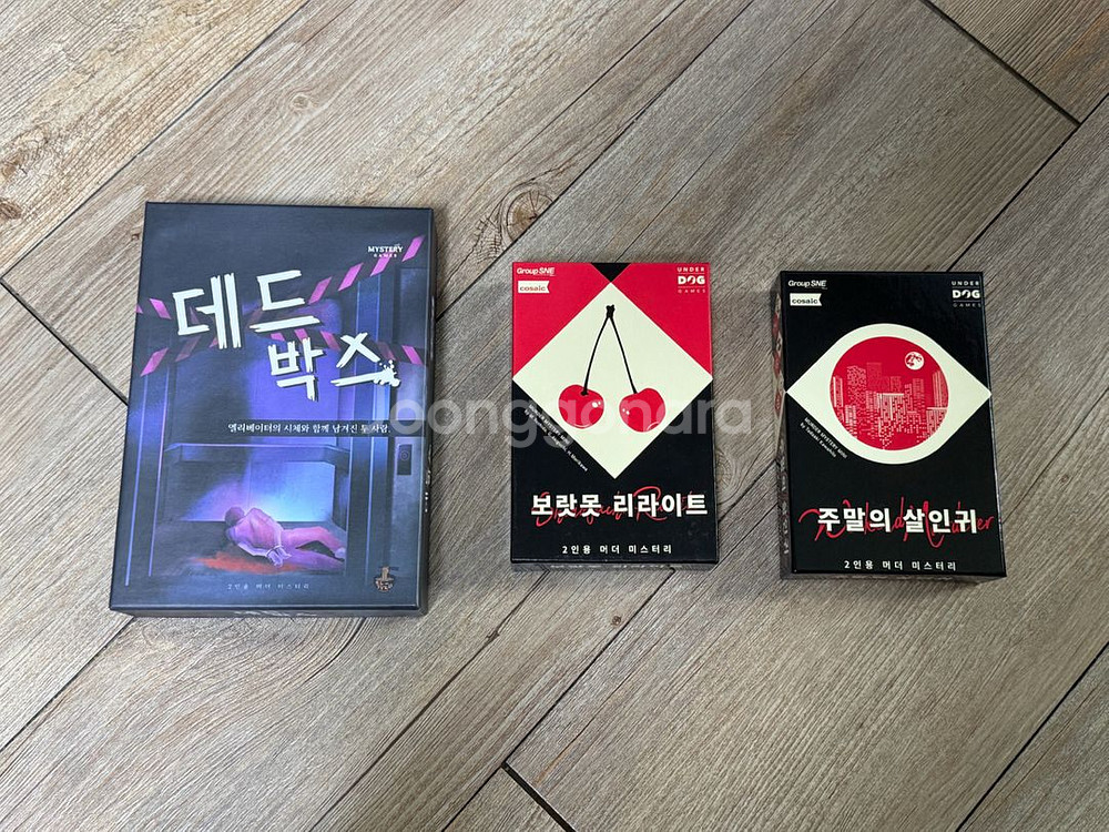 세 제품 모두 상품특성상 1회플이고 새 제품과 다름 없습니다 보랏못 리라이트 - 20,000 주말의 살인귀 - 20,000 (판매완료) 데드 박스 - 30,000 비틀거리는 카나리아에게 - 20,000 마법사와 잠자는 숲 - 20,000 네고 일단은 받아보겠습니다…!
