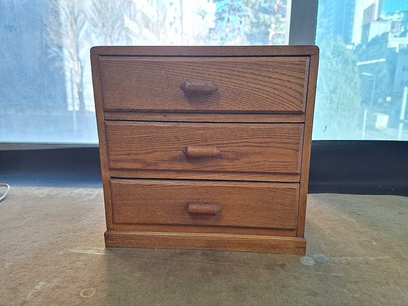 책상옆에 놓고 쓰기좋은 아담한 서랍장입니다. 무늬가 예쁜 괴목이 아름답습니다. whd 27-27-19cm 판매 5만원 직거래는 고양시