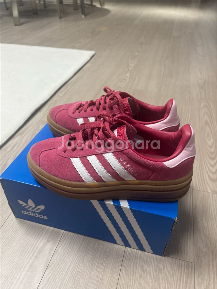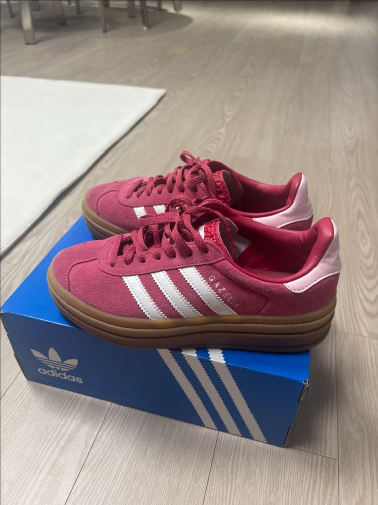 사이즈 230입니다 스웨이드 특성상 뒷쪽 오염 있고 끈부분 살짝 오염있으나 저에게 커서 몇 번 안신어서 상태 좋은편입니다. 상자는 다른 운동화 상자입니다