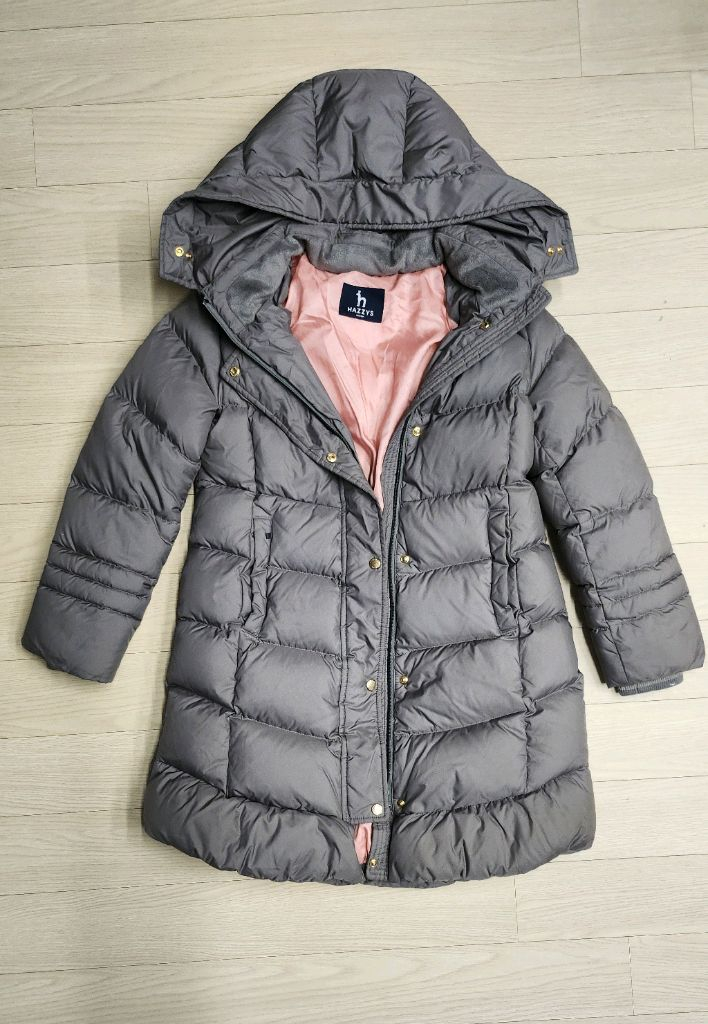 헤지스키즈 구스다운 패딩 145사이즈입니다 색상은 고급진 진회색이고, 솜털 80%, 깃털 20% 충전재로 가볍고 따뜻합니다 충전재 빵빵하고 상태 양호한데 이사중에 모자 탈부착 털이 분실되어 저렴하게 내놓아요~ 택배/반택 가능합니다(택비 구매자 부담)