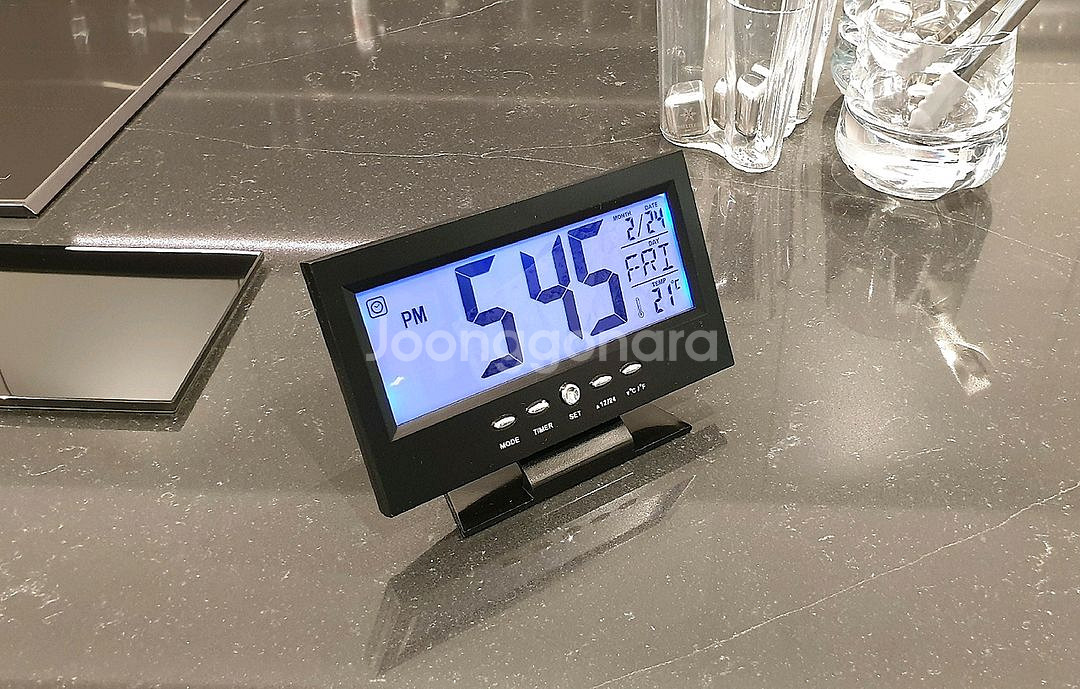 가성비 최고의 탁상 LCD 알람 시계 . 시원하고 큰 액정창 깨끗하고 시인성 높은 블루라이트 침대 옆, 아이방, 거실에 놓고 사용 하시면 아주 좋습니다 소리에 따라 라이트 자동 ON/OFF 절전기능 알람 기능 추가. 중후한 블랙 칼라 AAA 건전지 2개 무료제공 미사용 새제품 .