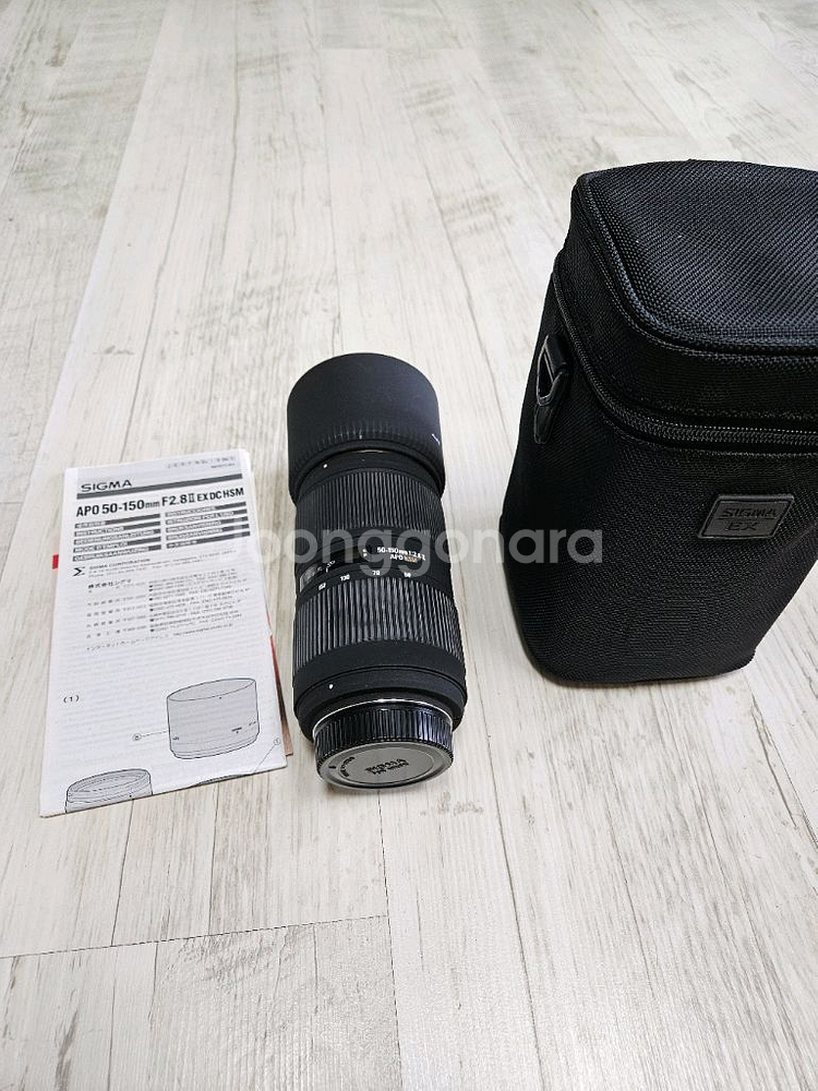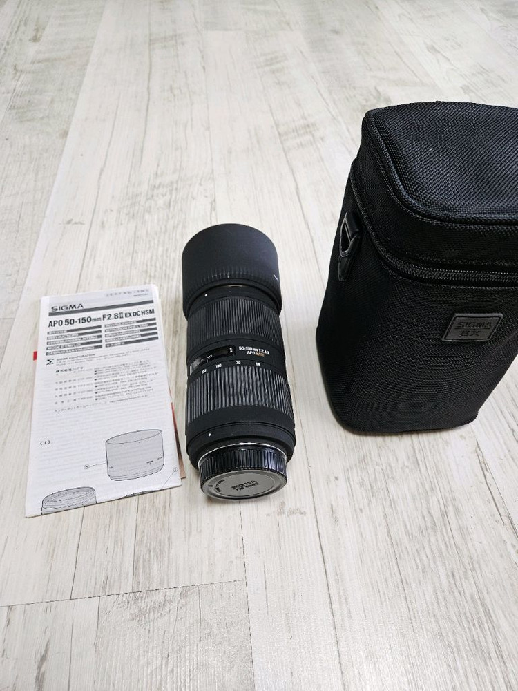 니콘용 시그마 APO 50-150mm F2.8 II EX DC HSM 렌즈입니다. 렌즈 보호 필터 장착되어있습니다. - 50-150mm의 초점 거리를 제공하여 다양한 촬영 환경에 적합합니다 - F2.8의 밝은 조리개와 빠른 자동 초점(HSM) 모터 적용 - 렌즈 후드, 케이스, 설명서 포함입니다