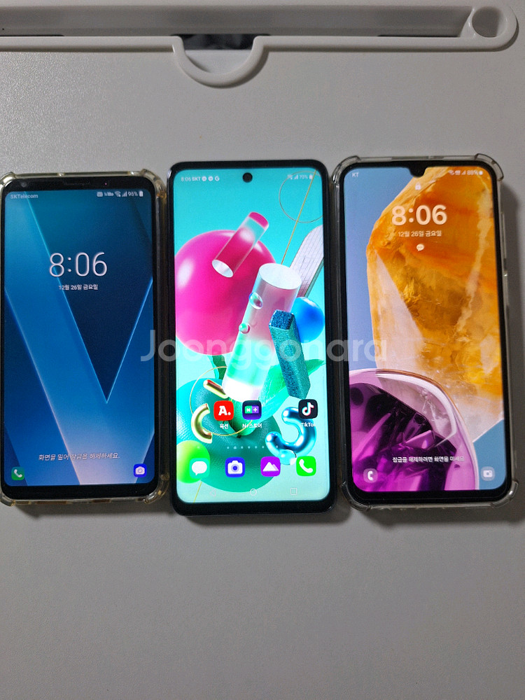 LG V30 - 5만 LG Q92 - 7만 삼성 갤럭시 wide7 (박스있음) - 12만 중고가가 이정도 형성 되어 있는것 같습니다. 기능다 정상작동하며 사용상이상 없습니다. wide7은 최초통화일 2025.1월입니다. 사정상 하나씩 판매가 어려워 일괄로만 20만에 판매합니다. 대전 용문역 직거래가능합니다.