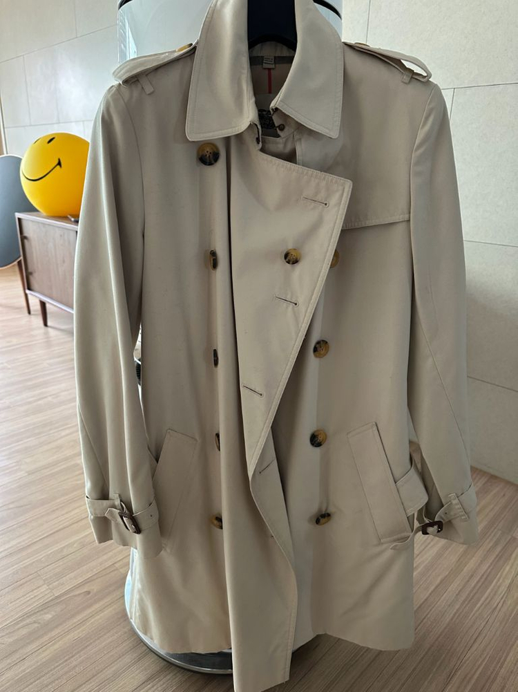 입금확인시 당일 또는 다음날 택배로 발송드려요 영국 런던 매장에서 구입한 버버리 여성 트렌치 코트 uk8(55적당)mcl4140 40만착불로 판매합니다 부모님께서 여행 중 사오셨는데 한번 입고 넣어두다 드라이완료하여 보관해놓았어요 입지도 않았는데 사진에서 보이는 것처럼 눈에 크게 띄는 얼룩은 아니지만 얼룩이 있네요 크게 안띄나 예민하심 새상품 구입해주세요 반품환불 불가 - 사이즈는 UK8 (USA6) 입니다 - 색상은 베이지, 클래식 핏입니다