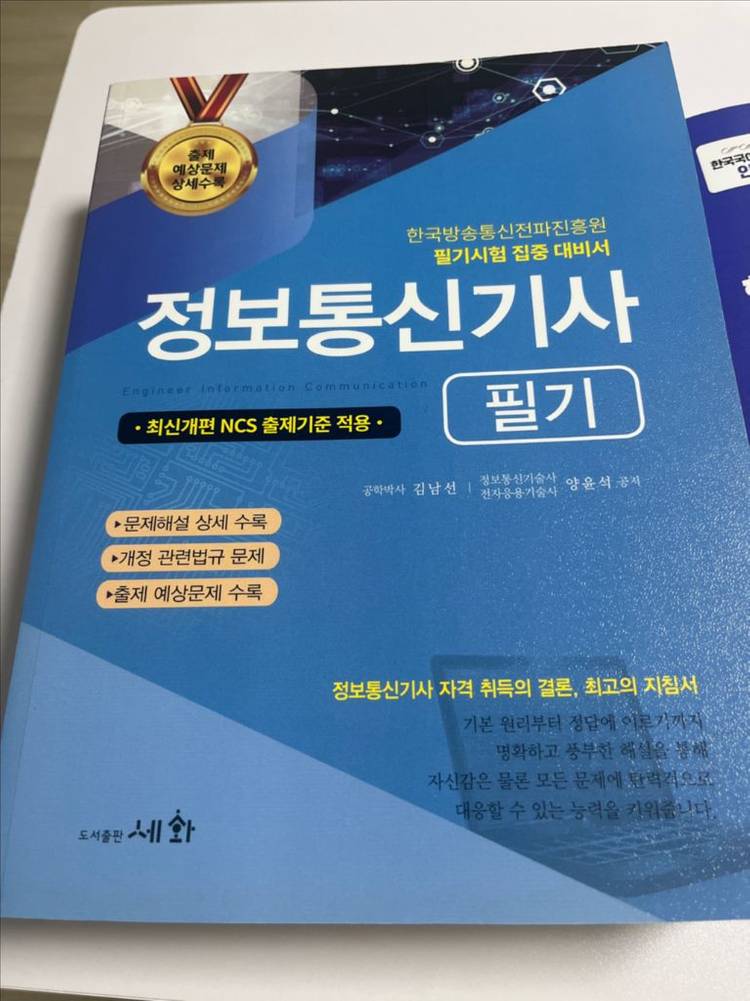 정보통신기사 필기시험 대비 교재입니다. 세화(보라책) 입니다. 반품하려다가 상자 잃어버려서 올립니다. 아예 새 상품이에요!