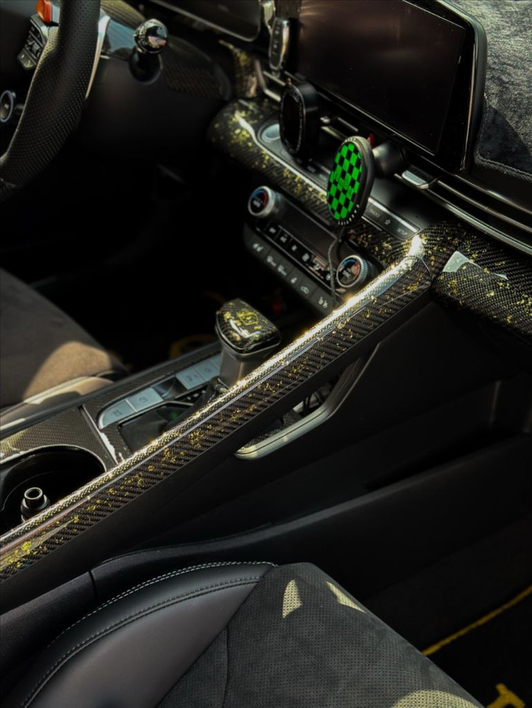 T존6파츠, 핸들 뒤 커버, 기어봉, 컵홀더2파츠 개별구매 가능 합니다. 카본 클리어 올리기 전에 식용 금가루를 사용해서 금칠 카본입니다. 빛 받으면 눈부시게 반짝 거립니다
