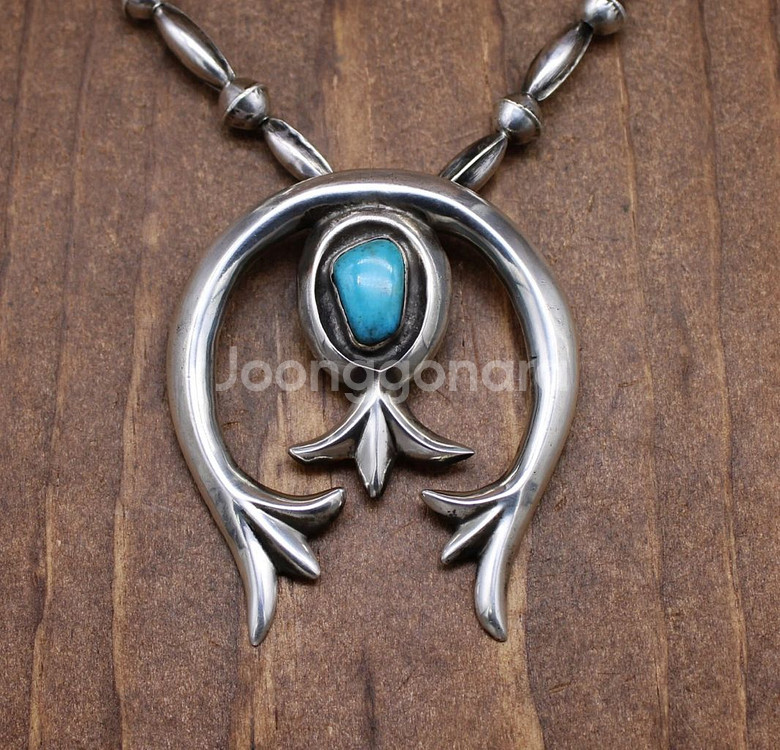 네이티브 아메리칸 쥬얼리의 대표적인 나자 목걸이 입니다. 많이 애정하던 제품입니다. 빈티지치곤 상태 많이 좋은 개체입니다. 펜던트 탈부착 가능한 클립으로 거는 형식이라 정말 편합니다. 줄 길이: 약 62cm 펜던트 높이: 약 6.3cm