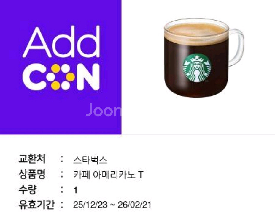 스타벅스 카페 아메리카노 T사이즈 교환권이에요. 유효기간은 2026년 2월 21일까지입니다.