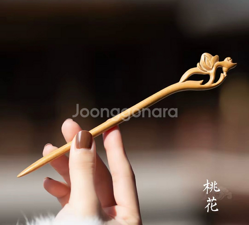 나무로 만든 꽃 장식 머리핀입니다. 은은한 나무 색깔이 고급스러움을 더합니다. 핸드메이드 제품 특성상 약간의 옹이가 있을 수 있습니다.길이 18cm 재고 5개