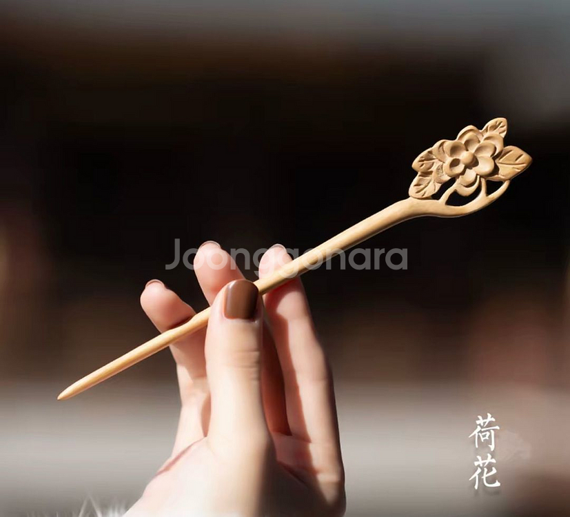 복숭아나무로 만든 연꽃모양 비녀입니다 길이는 18cm입이다 재고 5개