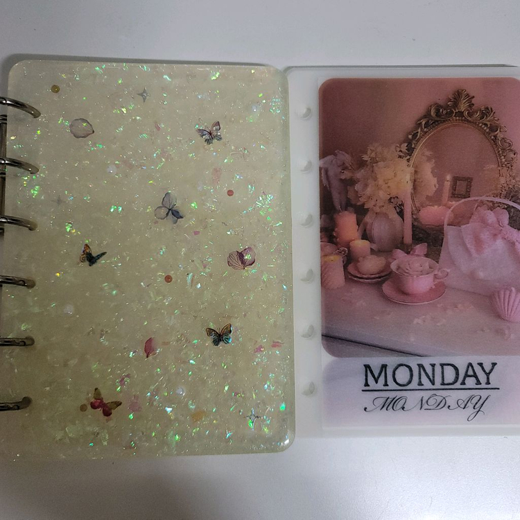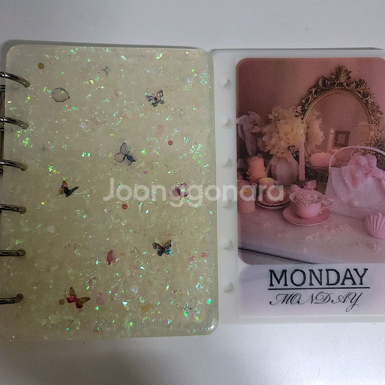 미사용 새제품으로 구매했었는데 원하는 사이즈가 아니어서 팔아요. 레진 홀로그램 바인더 + 링 + 요일 속지 일괄입니다. 감성 요일 속지는 팔렸고 고양이 요일속지만 남아있어요. 고양이 요일속지는 보시다시피 2장 뒷면에 잉크 자국이 있습니다. 참고 부탁드려요. 바인더는 13×9.5 정도 되요. 자개 같은 홀로그램이 들어있어서 예뻐요. 다른 제품과 합배송 가능! 편택 반택 가능 상점 내 다른 제품과 함께 구매시 택포 및 에눌 가능 환불 불가!!