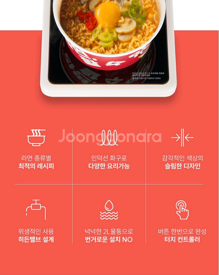 일반라면, 짜장라면, 너구리 등 다양한 라면을 조리할 수 있습니다.