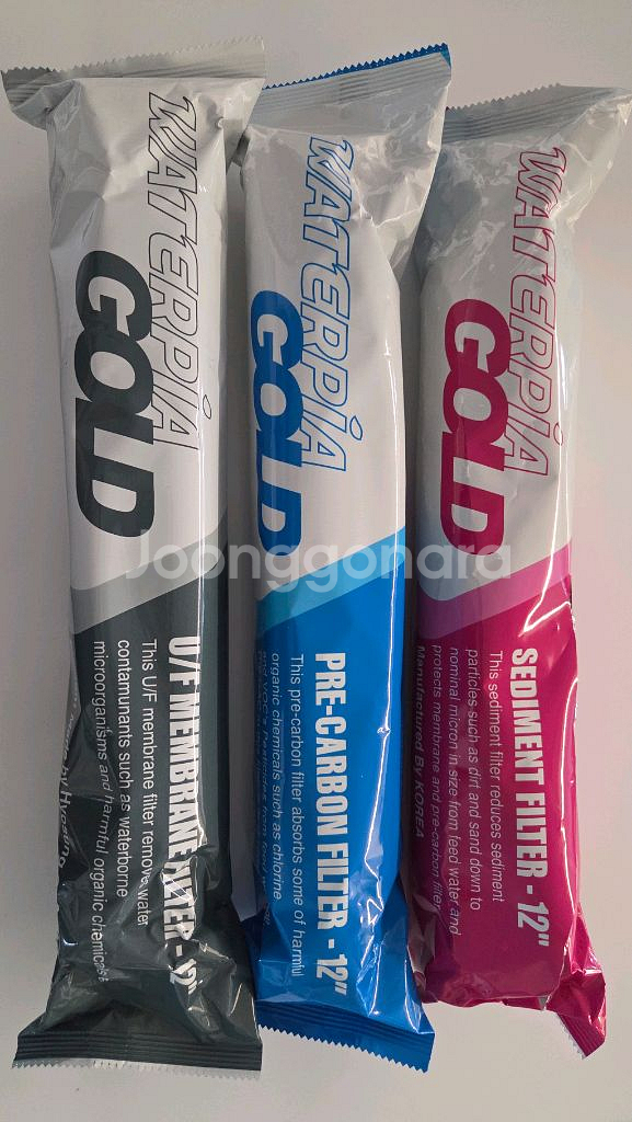 원봉 워터피아 골드 정수기 필터 새상품 입니다. 12인치 양방향 타입 입니다. (입수와 출수가 양 끝에 각각 있는 타입) - 1단계 세디먼트 - 2단계 프리카본 - 3단계 UF멤브레인 정수기 바꾸면서 남은 필터이고, 3개 모두 새상품 이에요. (빨간색 세디먼트 필터는 비닐만 뜯었어요) * 직거래 : 위례 (평일 저녁, 주말 종일) 또는 판교테크원 (평일 오전/오후) * 택배비 : 제주/도서 지역은 금액이 달라서 구매 전에 알려주세요 * 궁금한거 없으시면 바로 구매 및 결제 하시면 됩니다. (간혹 다른 중고 장터에서 먼저 판매되는 경우, 취소 될 수 있어요) * 퇴근하고 포장해야해서, 당일 밤 또는 늦어도 다음날 오전 중에는 발송해드려요.
