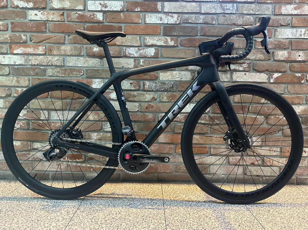 트렉 도마니 SLR 7 AXS 4 세대 입니다 2023년 새상품 이며 사이즈는 54 입니다 가격은 13,200,000만원 입니다 구동계는 스램 포스 eTap 12단에 파워미터 크랭크 장착되여 있습니다 휠셋은 본트레거 에올루스 프로 37 카본 입니다