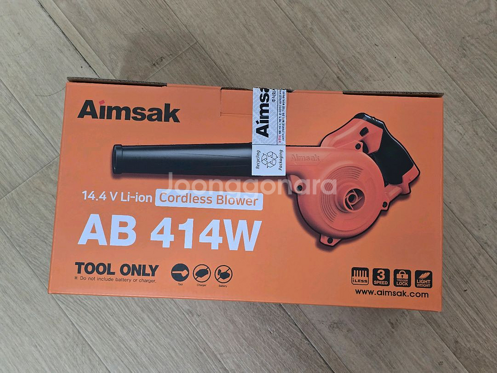 아임삭 14.4V 리튬이온 무선 송풍기예요. 박스와 본체 모두 깨끗한 상태로 잘 관리되어 있습니다. 구성품 본체 배터리 충전기