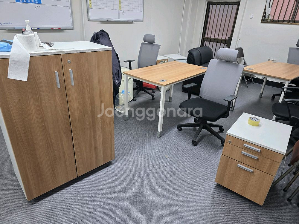 오피스용 수납장과 책상, 의자들이 포함된 세트입니다. 브라운 우드 패턴의 가구입니다 중역세트도 판매합니다 적정가격 상의가능 합니다 운송도 가능해요