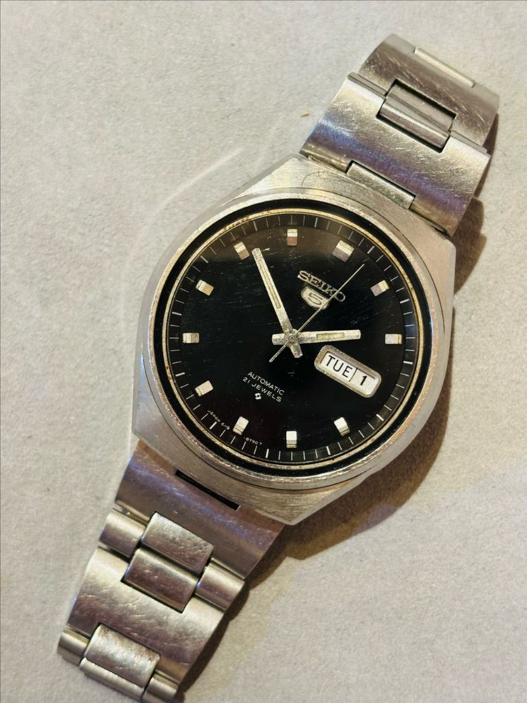 1970년대 세이코5 빈티지 오토매틱 시계 입니다. 오버홀 완료했습니다 케이스 생활기스 있습니다 다이얼에 생활기스 있습니다 빈티지 기계식 시계이므로 일오차가 있을수 있습니다. 또한 용두를 뽑을때 초침이 멈추는 핵기능이 없습니다 날짜조정 기능 없습니다 무보정 사진이므로 상세 사진을 확인바랍니다. Made in Japan Size : 39mm(용두제외), 러그 20mm Color : 스틸 - 모든 시계는 제가 직접 깨끗이 청소하고, 24시간 이상 동작 확인 및 기본적인 정비를 하여 이상이 없는 제품만을 판매합니다. - 빈티지 제품은 특성상 사용감, 스크래치 등이 존재하며 이러한 경우 사진과 함께 최대한 자세히 설명을 하도록 노력하고 있습니다. - 새상품이 아니므로 초기 불량 이외에는 A/S, 교환, 환불이 어려우니 궁금한 점은 톡으로 문의주시고 구매바랍니다. - 택배 또는 매장 방문하셔서 구입가능합니다 (서울 광진구 광장로75-1, 1층 유로빈티지)