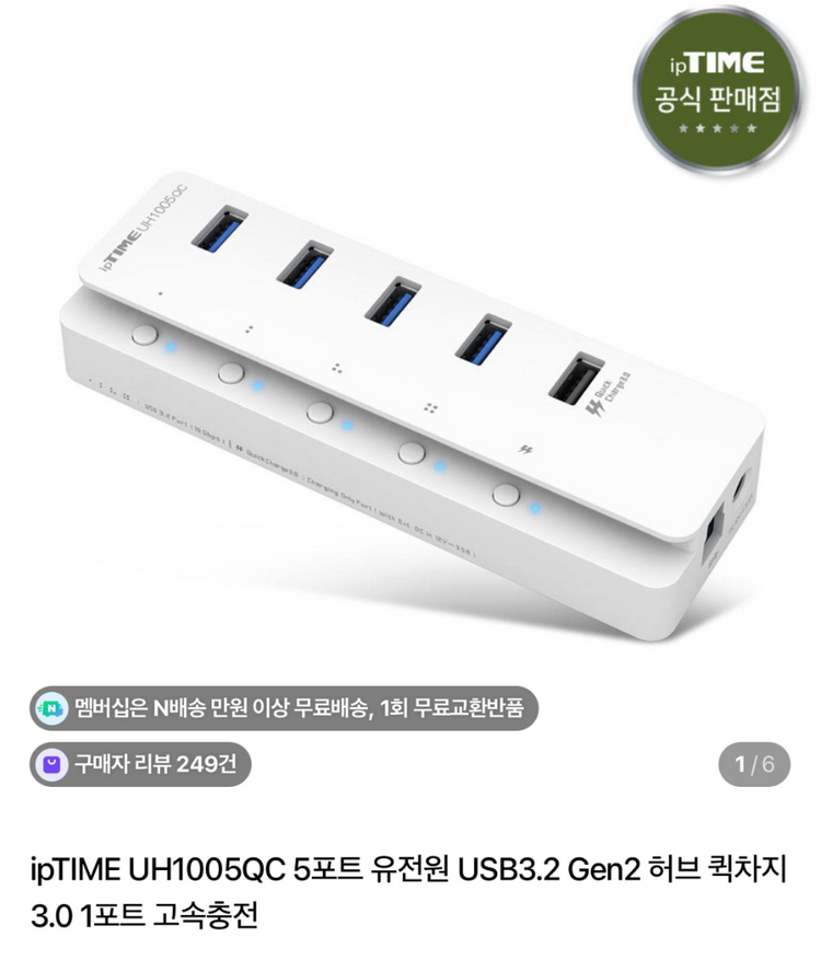 ipTIME UH1005QC 2025년 12월 21일 구매했습니다 멀티허브 쓸려고 샀다가 필요가 없어져서 바로 방출 합니다 ㅜㅜ 박스 그대로구요 설명서는 없네요