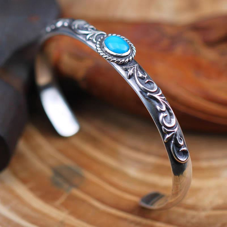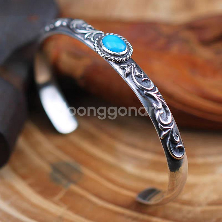 반짝이는 터쿼이즈가 세팅된 925 실버 뱅글로, 섬세한 핸 드카빙 디자인이 특징입니다. 어떤 스타일에도 잘 어울리 며 단독 착용이나 레이어링 모두 가능합니다 S 사이즈 (손목 둘레 15–16cm) – 210000 M 사이즈 (손목 둘레 17–18cm) – 230000 L 사이즈 (손목 둘레 19–20cm) – 259000