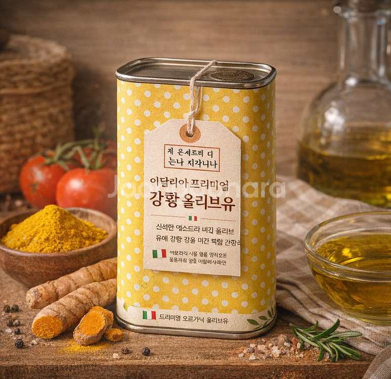 이탈리아에서 사온 강황 올리브유 미개봉 새제품입니다. 틴케이스가 예뻐서 인테리어 소품으로도 활용 가능합니다. 샐러드나 파스타에 뿌려 드시면 향긋하고 맛있습니다. 이탈리아 여행 중 구매한 강황(Turmeric) 향 첨가 엑스트라버진 올리브유입니다. ✔️ 이탈리아 현지 생산 ✔️ 엑스트라버진 올리브유 베이스 ✔️ 강황 향이 은은하게 더해진 고급 오일 ✔️ 250ml 틴케이스 (선물용으로도 좋아요) ✔️ 미개봉 / 보관만 한 새상품 샐러드, 파스타, 볶음요리, 고기요리에 살짝 뿌리면 풍미가 확 살아납니다.