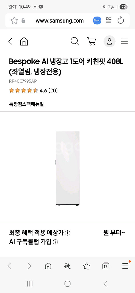 재개발 입주권에 포함된 가전제품으로, 미개봉 새상품입니다. 개인 사용 계획이 없어 판매합니다. 댁으로 배송 설치해 드립니다. 모델명: RR40C7995AP (냉장고 408L) RZ34C7965AP (냉동고 347L) RQ34C7945AP (김치냉장고 347L) 상태: 미개봉 새상품 설치: 전문 기사 설치 포함 가격: 개별 판매도 가능하니, 문의 주세요^^ 입주 시 제공되는 제품이라 구성품 모두 새제품이며, 구매 확정 시 설치 일정 안내드립니다.