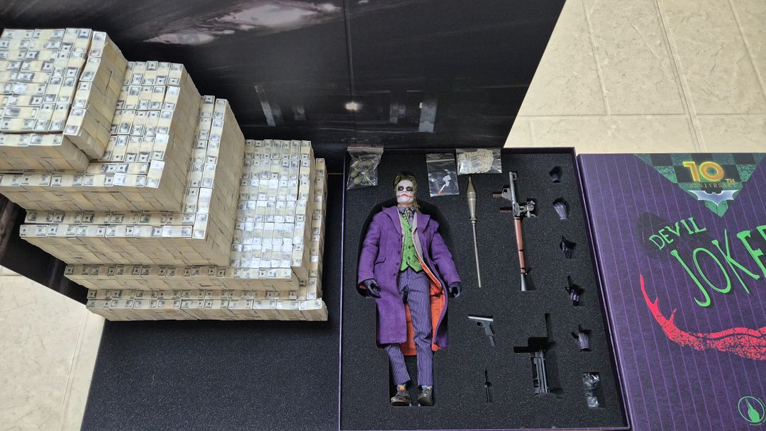 직거래입니다 강서구 마곡힐스테이트 정문 블랙토이즈에서 나온 데빌 조커 1/6 스케일 피규어입니다 돈다발 소품도 함께 드립니다