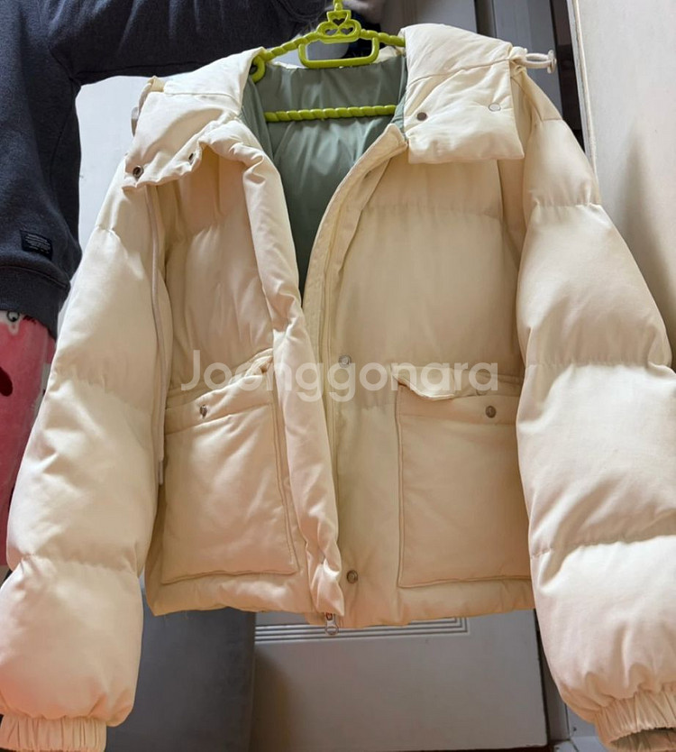 아이보리 색상의 숏패딩입니다 상태는 사진과 같이 양호합니다 겨울에 따뜻하게 입을 수 있어요 원가 10만원대입니다