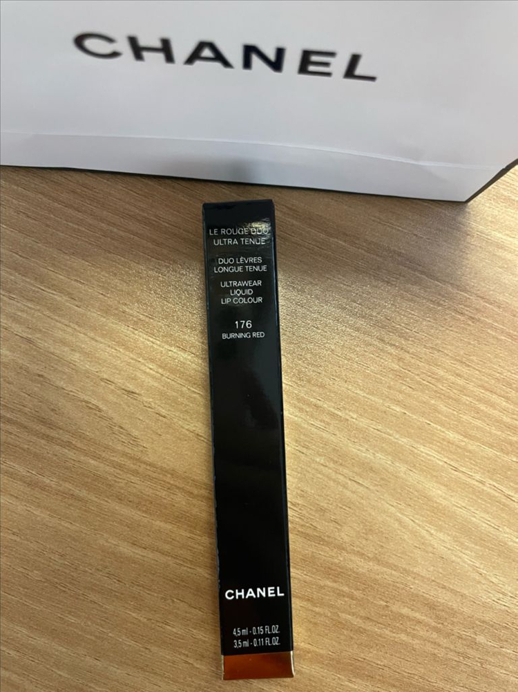 샤넬 루 루쥬 듀오 울트라 뜨뉘 176번 버닝 레드 색상이에요. 유통기한 2027년 롯데백화점에서 구매했고 선물용으로 여러개 샀다가 남은 제품 올립니다 쇼핑백과 구매시 받은 파운데이션 샘플이 동봉됩니다 gs편의점 반택포 가격입니다