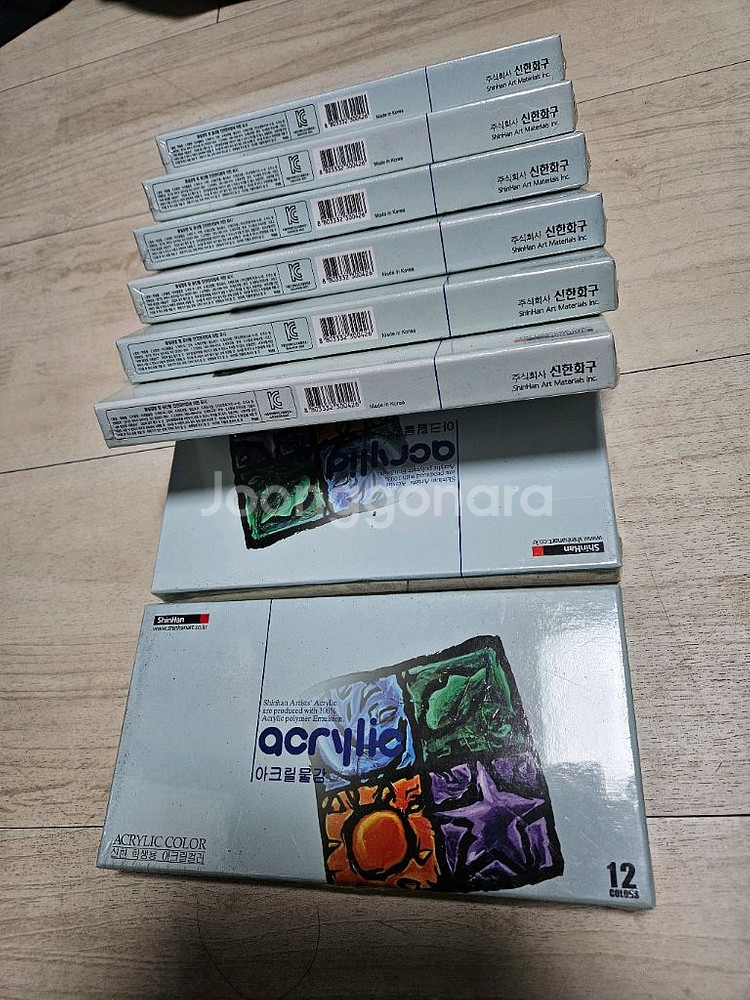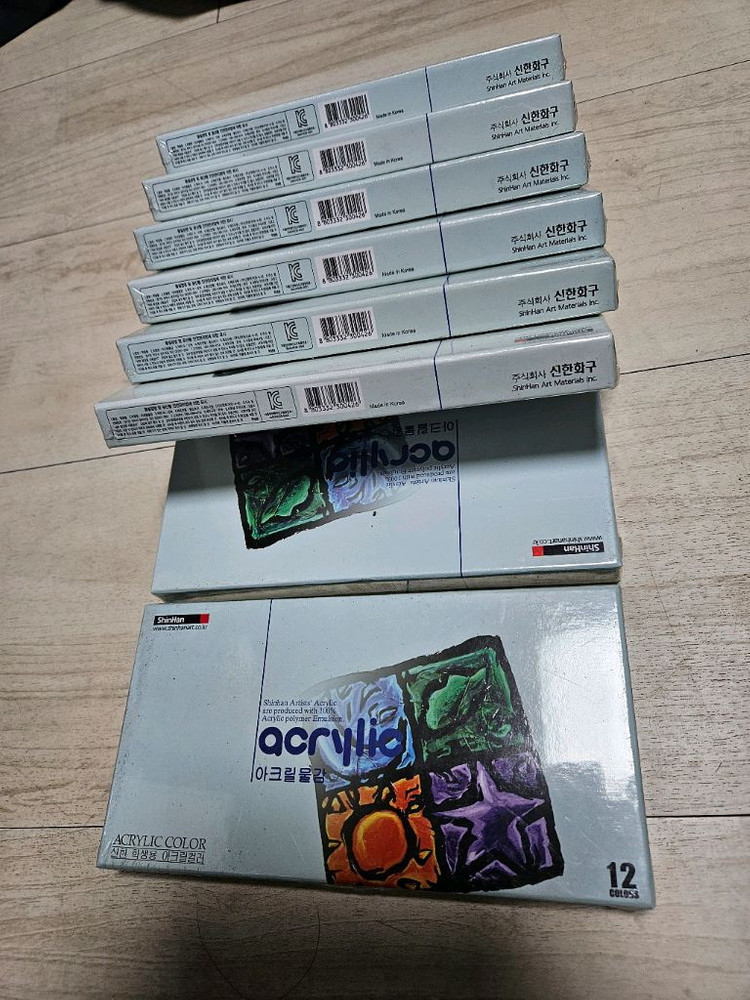 아크릴 물감 여러 색상으로 구성된 세트예요. 미개봉 새 제품 상태로 다양한 컬러가 포함되어 있어서 그림 그리기나 미술 작업에 활용하기 좋을 것 같아요. 12칼라
