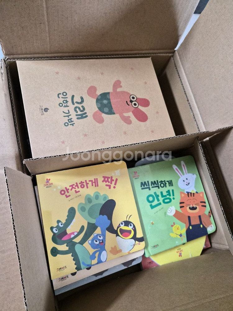 그레이트북스 그래그래 새상품 전체품 보드북이고 조작북이 많이 들어있어 아이들이 너무좋아해요 28만원에 판매합니다 비닐도 안뜯은 새상품입니다