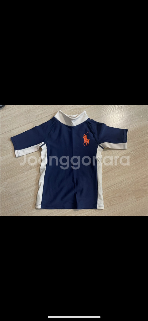 28개월 착용샷 (한번 입고 보관했으나 착용감있어요) 크게 입히셔도 좋을듯 . 목부분이 햇빛에 노출안되서 좋아요 폴로마크는 까짐없이 상태양호하지만 옷에 흰색부분 특히 목 부분 약간 변색이 있어요 옷 안쪽 케어라벨 모두제거로 사이즈 확인불가 ( 반값택배비별도 )