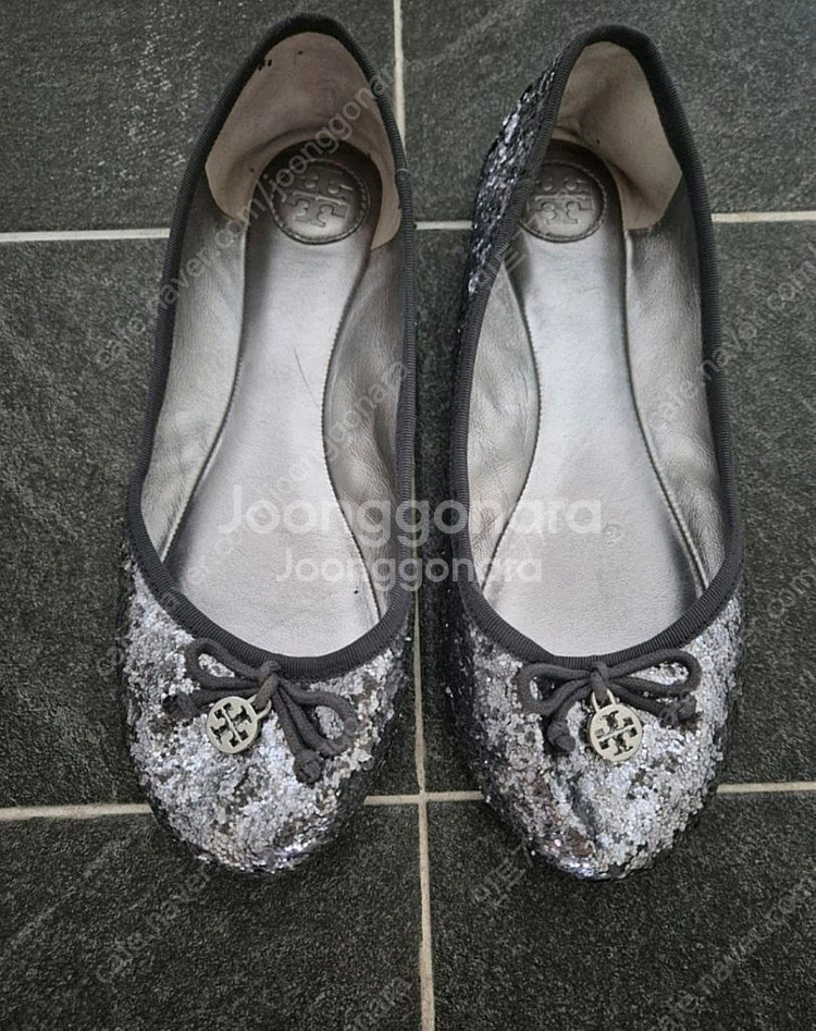 토리버치 스팽글 플랫슈즈 . 사이즈 245 너무 이쁜 토리버치 신발입니다. 정품. 약간 사용감있는건 스팽글특성상 그런것같아요. 예민하신분은 패스해주세요~~ 비즈라 떨어진부분 있기는합니다. 사진으로 확인해주세요 반품×