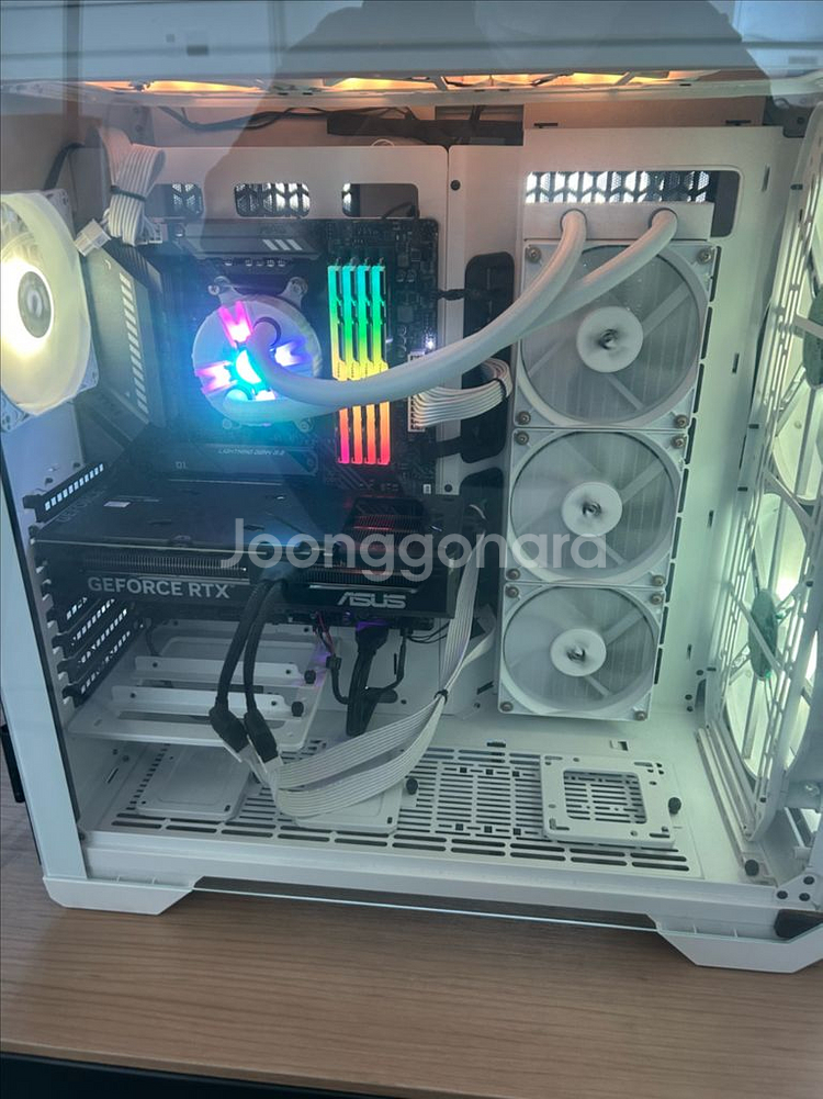 안녕하세요, 하이엔드 작업용 시스템에서 그래픽카드만 제외한 본체 일체를 판매합니다. 주요 핵심 부품들은 모두 박스를 보유하고 있으며, 그래픽카드만 장착하시면 바로 사용 가능한 상태입니다. 1. 판매 구성품 • CPU: AMD 라이젠 9 5900X (12코어 24스레드) [박스있음] • 메인보드: MSI MAG X570S 토마호크 MAX WIFI (상급 보드) [박스있음] • RAM: G.SKILL DDR4-3200 CL16 TRIDENT Z NEO 128GB (32GB x 4) [박스있음] • 현재 램값 폭등으로 128GB 세트는 매우 희귀하며, 지스킬 트라이던트 네오 패키지라 가치가 높습니다. • SSD: 삼성전자 970 EVO Plus 500GB (NVMe M.2) [박스있음] • 쿨러: 잘만 Reserator5 Z36 (WHITE) • 3열 수냉 끝판왕 성능으로 5900X 풀부하 시에도 40도대 유지 확인 완료. • 케이스:써멀테이크 View51 • 파워: 마이크로닉스 1050w gold • 본체 배선 및 전원부 세팅이 완료되어 있어 그래픽카드만 꽂으시면 됩니다. ⚠️ 안내사항: • 그래픽카드만 제외된 구성입니다. • 케이스 박스는 별도로 보유하고 있지 않아, 완본체 형태로 직접 수령하셔야 합니다. 2. 제품 상태 및 특장점 • 안정성: 128GB 풀뱅크 구성임에도 OCCT 스트레스 테스트 에러 0개 완벽 통과 (사진 첨부). • 온도 관리: 24스레드 풀부하 테스트 시 CPU 온도 40도 중반 유지할 정도로 쿨링 컨디션 최상입니다. • 작업 성능: 128GB 대용량 메모리로 영상 편집, AI 딥러닝, 다중 가상 머신 구동 시 최적입니다. 3. 판매 가격 및 거래 방식 • 가격: 130만 원 • 거래 장소: 직거래 [ 협의후 장소 조율합니다 ] • 케이스 박스가 없고 파손 위험이 있어 직접 오셔서 상태 확인 후 수령하시는 것을 선호합니다.