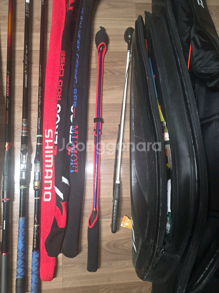 다양한 브랜드의 낚시대와 전용 케이스들이에요. 케이스는 블랙과 레드 컬러로 되어있고, 낚시대들도 여러 개 포함,보조스플과티타늄주걱은미사용,찌34개,수중찌30여개이상화이어블러드530-1,5 국산대530-0,8 국산대530-1,5 토너먼트 3000LBD.막대찌다수,그외다열것할수없어기방채다드림 이제갯바위낚시를 못하게되어 판매합니다 010-2494-2677 전화부탁드립니다 댓글못봅니다 *일괄*로 만진행합니다