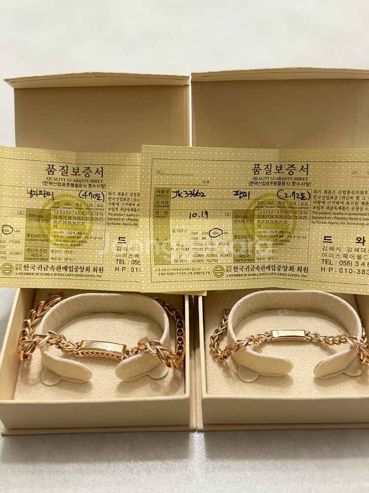 커플 금팔찌(18K) 일괄&개별 판매. 남성용 4.7돈 줄길이 21~21.5 센치 319만 여성용 2.72돈 줄길이 17.5 센치 184만9천 부산 거주하시는분 금방동행 가능하고 보증서 있습니다. 당근은 금판매가 안되어서 번개장터 중고나라 이용하여 판매합니다 부산 직거래 가능합니다. 일괄&개별 판매 가능 금 시세따라 금액 변동있습니다. 짜투리는 금액은 알아서 빼드리오니 쿨거래 부탁드립니다. 편하게 문의주세요 :) 0일0 삼4팔구 7이삼육