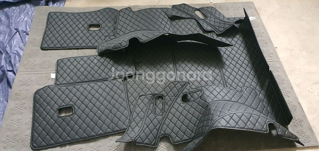 제네시스 GV80 5인승 트렁크 매트입니다. 트렁크 공간에 맞게 재단되어 깔끔하게 잘 맞습니다. 푹신한 엠보싱 가죽으로 고급스러움을 더했습니다. 박스포장이라 접어서포장이라 약간에 구김이 있을수있어요 사용하다보면 펴져요~