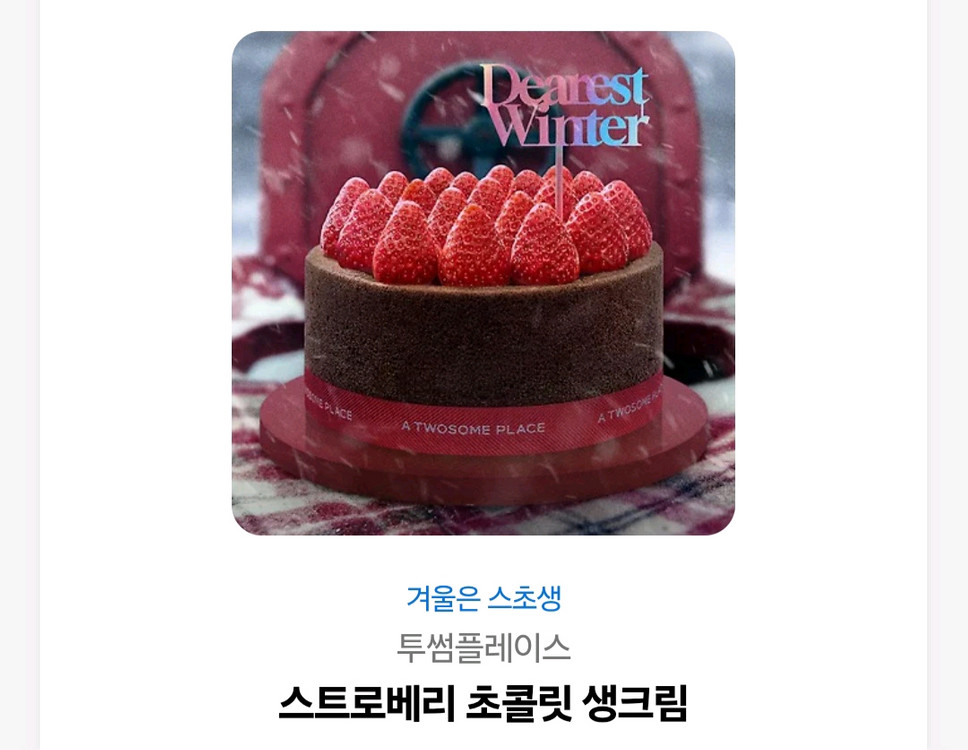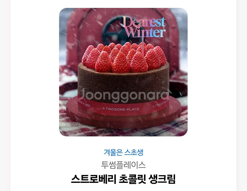 개인정보(거래정보)를 주고받는 행위는 사기에 노출될 수 있으므로 즉시 중고나라로 신고해 주세요투썸 스초생 케이크 팝니다 39000->32000 39000원 금액 만큼 다른 상품으로 구매도 가능합니다 2장있어요 ~