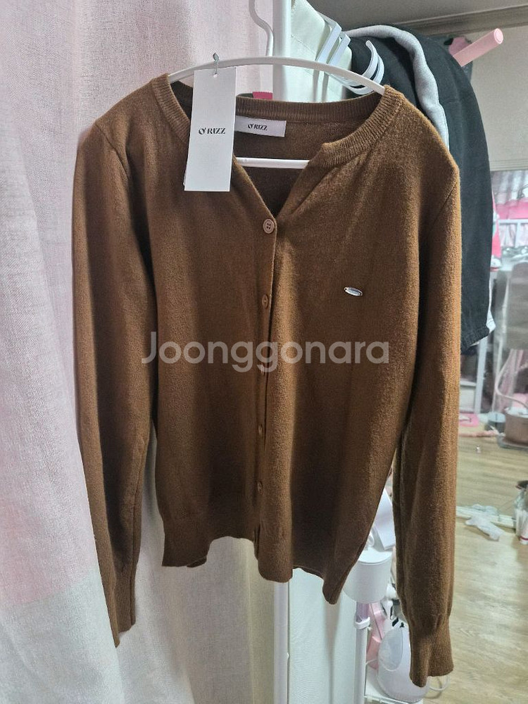 브라운 컬러의 여성용 니트 가디건이에요. 택 그대로 달려있는 새상품 상태로 깔끔하고 고급스러운 느낌입니다. 봄가을 코디하기 좋은 예쁜 색상이에요!