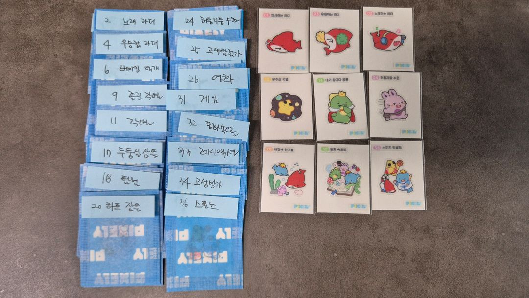 네고❌️ 한장도판매가능 하트잠뜰 4,000원 바닷속친구들, 영화관람, 동화속으로, 고성방가밴드 고대탐험가 즐거운게임시간,레디액션, 스포츠, 우주각별 장당 3,000원 덕개 잠뜰 각별 수현 공룡 라더 장당 2,500원 ❌️3번 라더 1,000 하자사진확인요망 편의점반택⭕️(2,500원추가)
