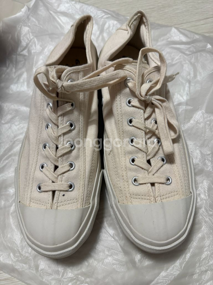 문스타 스니커즈 아이보리 색상입니다. 한번 착용 했었어요 편하게 신기 좋아요~ 캔버스 재질이고, 밑창은 헤링본 패턴입니다 250사이즈 꼭 사실분만 챗주시고 에눌 비매너 찔러보기식 사양입니다. 에눌 문의 주시면 답변 안합니다. 당근 번개장터에도 올렸으니 오해마세요 택배 +4000원입니다