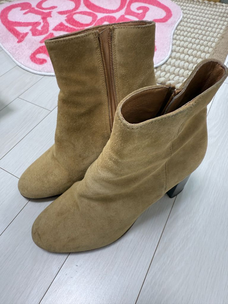 마쥬 스웨이드 부츠 230사이즈입니다. 실착 회수 5번 미만으로 상태 깨끗합니다 옆쪽에 지퍼가 있어서 신고 벗기 편할 것 같아요.