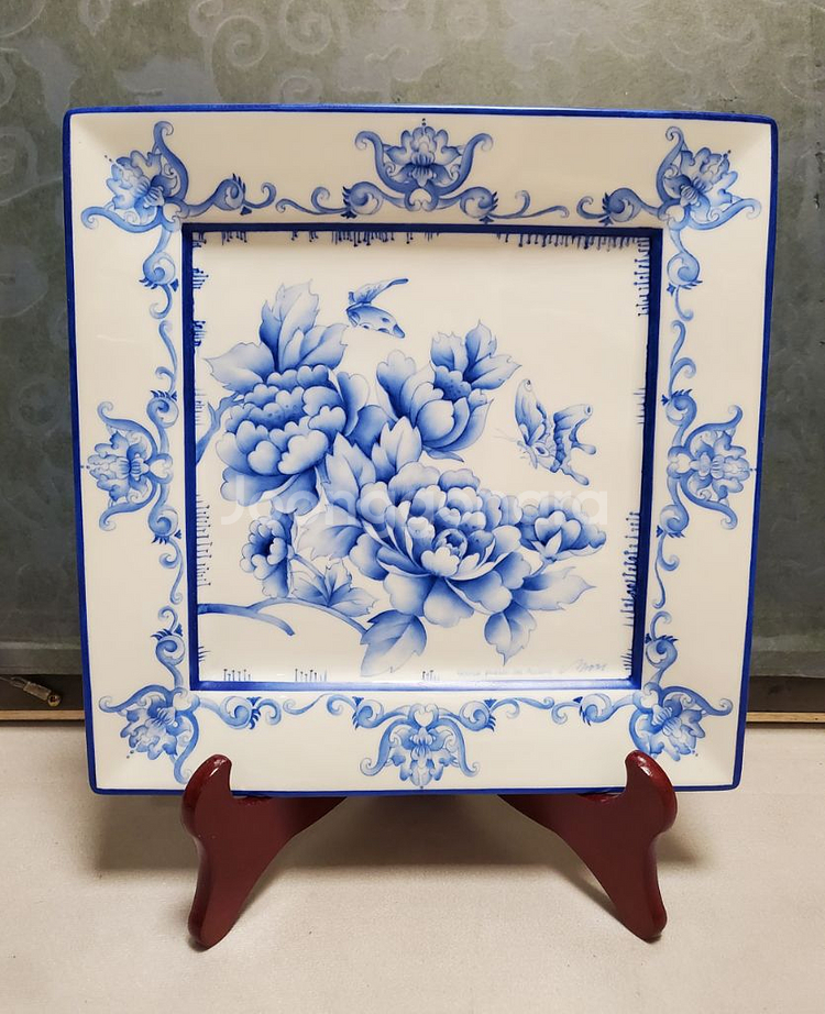 포슬린 아트란? 유럽, 미국 등에서 대중화 된 도자기 예술로, 유약처리 된 전용 백자 위에 특수안료와 오일을 이용해 그림을 그린 뒤 3~4회 가마에 구워내는 도자기 공예를 말한다. 인테리어용일 뿐 아니라, 인체에 무해한 허브재료를 사용하여 실사용도 가능하다. 도자기 위에 블루 색상으로만 표현한 작품으로, 모란과 나비를 그린 민화입니다 도자기 물감 등 재료 모두 수입(유럽, 미국)에 의존하여 매우 고가이지만, 예쁜 도자기 좋아하시는 분께 일부 작품들 매우 저렴하게 판매합니다 (포슬린 작가 서명이 있습니다) 사이즈: 약30센티 (실제 색상보다 사진이 쨍하게 보이는 점 감안해 주세요) *시간과 금액 등 정성이 굉장히 많이 들어간 작품입니다;; 네고는 정중히 사양합니다ㅠ (여러개 구매시 접시 받침 서비스 가능합니다) *반품, 환불 불가하니 사진 확대하여 꼼꼼히 보시고 신중한 구매 부탁드립니다
