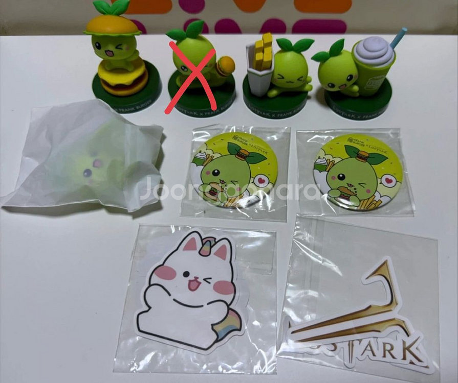 로스트아크X플랭크버거 콜라보 굿즈 피규어 4종-4000 캔배찌-2000 스티커-500 미개봉 피규어는 밀크쉐이크인데 밑판이 없이 포장되어있었어요 ㅠㅠㅠ 구매하시는 분 원하시면 그냥 드릴게요!! 모코코만으로도 충분히 귀엽고 서있을 수 있어서 진열에는 문제 없어요!! 반택가능-추가금 발생